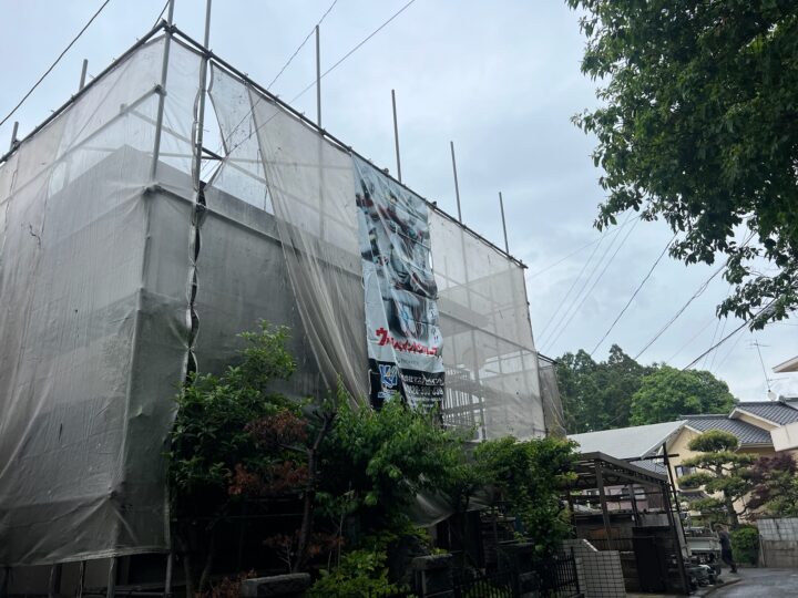 足場架設⇒高圧洗浄⇒付帯部塗装⇒外壁塗装⇒屋根塗装